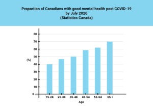 A recent Statistics Canada report, prior to COVID-19, said youth aged 15 to 24 were already the least likely to report excellent or very good mental health. In July 2020 they reported the greatest decline in mental health since before the pandemic from 40 per cent down to 60 per cent.