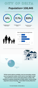 Delta does not have a large population of unsheltered homeless people sleeping on the streets, Krueger said. “But we do have a lot of people in precarious housing situations, people living on couches couch-surfing, people living in their cars, people who might be month to month on their rent, or they’re under-housed, they’ve got a big family, but they’re living in a space that’s too small for them.”
