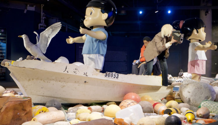 The exhibit also draws attention to the Great Pacific Garbage Patch. According The Ocean Cleanup, a non-profit organization dedicated to ridding the oceans of plastic, this is the largest of the five main garbage patches in the world’s oceans, lying between California and Hawaii.