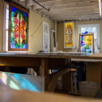 The glass they use comes from Europe, and their studio is one of the few on the West Coast that still uses historic materials throughout the process of cutting the glass and creating a window.