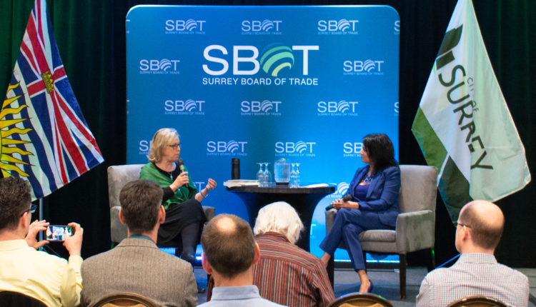 The public event featuring May was held by the Surrey Board of Trade on Tuesday ahead of the Oct. 21 federal election. The event’s purpose was for members of the community to voice their concerns about their community governments.