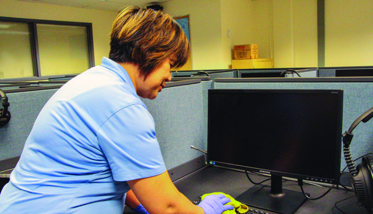 Hand sanitizer is installed around campus and in some computer labs for students and staff to use.